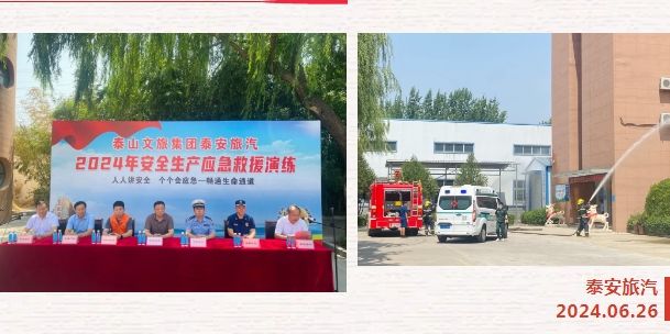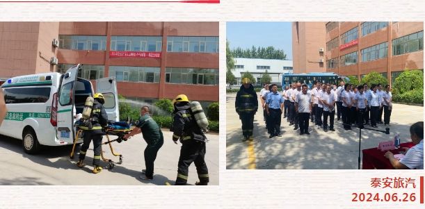 為全面強化公司安全管理,切實提高全體職工的安全意識和安全素養(yǎng),貫徹落實行業(yè)主管部門關(guān)于安全生產(chǎn)工作重要指示精神和安全生產(chǎn)月活動統(tǒng)一部署,6月26日上午,泰山文旅集團泰安旅汽結(jié)合實際,緊緊圍繞2024年第23個安全月“人人講安全 個個會應(yīng)急——暢通生命通道”的活動主題,組織進(jìn)行了辦公樓火災(zāi)逃生綜合應(yīng)急預(yù)案演練和車輛起火現(xiàn)場處置預(yù)案演練。本次活動邀請到市交通運輸局、交警支隊、消防大隊、中心血站、文旅產(chǎn)投集團相關(guān)單位領(lǐng)導(dǎo)蒞臨現(xiàn)場觀摩指導(dǎo)。